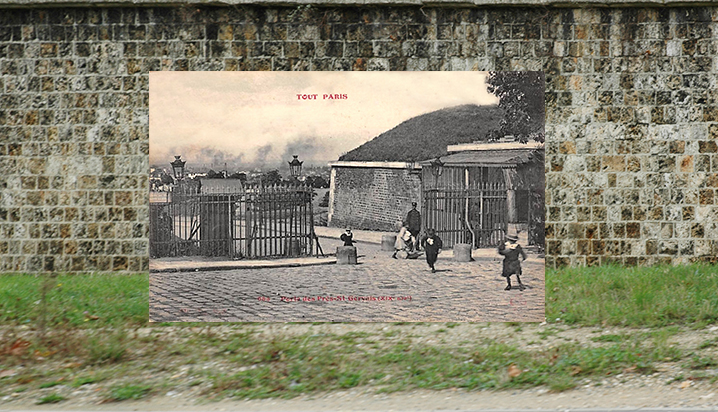 Construite de 1840 à 1845, l’enceinte d’Adolphe Thiers sera la dernière muraille de Paris à laquelle est assigné un rôle militaire avec ses 94 bastions. Percée de 65 ouvertures, 17 portes, 26 barrières, 8 poternes, 8 passages de chemin de fer, deux passages de canaux ainsi que celui de la Bièvre. Dès 1851, elle va être complétée par un chemin de fer de ceinture pour acheminer les troupes et l’approvisionnement. Il sera achevé en 1867.