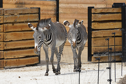 Les zèbres de Grévy partagent leur enclos avec les rhinocéros blancs.