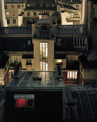 Verlaine de sa prison cherchait à voir le ciel au-dessus des toits, René Clair a tourné le film « Sous les toits de Paris » avec Edith Piaf. Les toiturophiles sont nombreux, ils aiment les balades qui permettent de découvrir la ville depuis les toits privés ou publiques ; Les grands édifices : Notre-Dame, La Tour Eiffel, l’Arc de Triomphe, les grandes tours de la Défense, les toits des grands hôtels, offrent une vision différente de la ville avec ses cheminées, ses toits en zinc, ses fenêtres aux formes si variées. Des horizons différents s’offrent à nous , au-dessus de la ville, des quartiers, des rues, des cours… En prenant de la hauteur on découvre un autre Paris. le photographe poursuit sa quête.