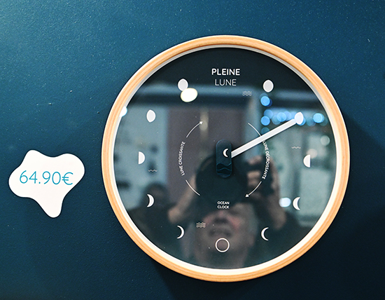 La nostalgie du bord de mer suscite des achats éloignés des rivages. Cette société familiale propose aussi horloge des heures, baromètre, horloge lunaire et des marées. Côté production, ils utilisent du hêtre et un verre minéral durable et recyclable. Un choix pour être plus en phase avec les cycles du temps qui passe et vivre au rythme des Marées.
