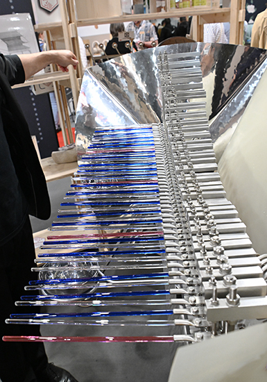 Comme celle de son Métalophone qui unit titane et cristal. Il est à découvrir sur place pour sa forme et les sons qu’il nous proposent. Il a participé à des défilés de Mode…