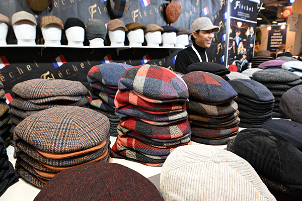 La gérante Corinne Suire souligne le retour en force des casquettes en Harris Tweed écossais, face au chapeaux.