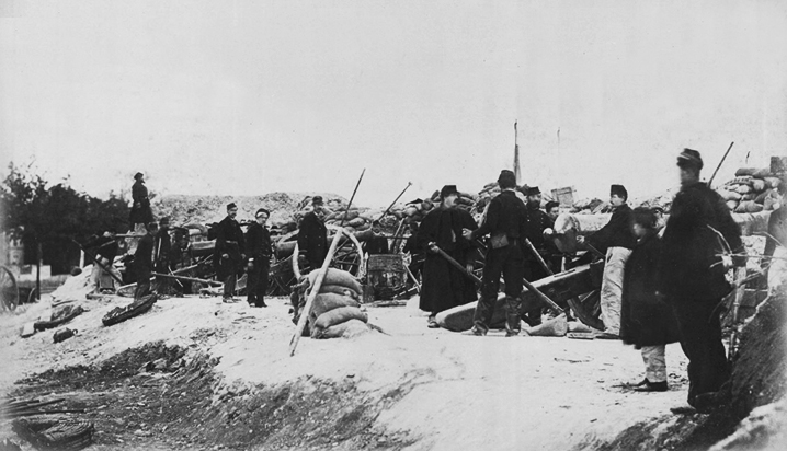 Dès le 2 avril, la guerre civile menée par les Versaillais voit des affrontements en périphérie de Paris, au pont de Neuilly, au Mont Valérien au fort d’Issy, au fort de Vanves. Les obus pleuvent, cependant le mur de Thiers (construit de 1841 à 1844) joue son rôle. Il empêche de pénétrer dans la Capitale, mais il n’y suffira pas. Un programme de construction de barricades est confié à des responsables de quartier afin de bloquer les voies stratégiques anticipant l’arrivée des Versaillais et pour empêcher leur progression. Mais le dispositif présentera des faiblesses sur le secteur Sud-Ouest.