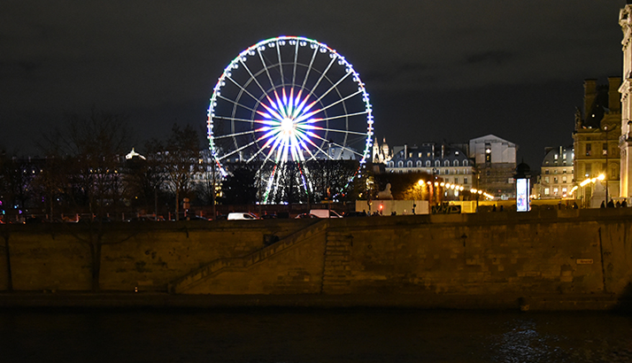 La Grande Roue illuminée de 50 mètres offre une vue magnifique de Paris et une patinoire de 1200m2 attend les sportifs.