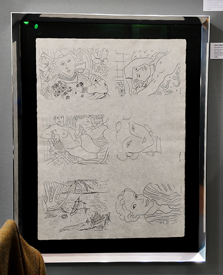 Galerie Saphir (Paris & Dinard) présentait six portraits et nus féminins de Matisse réunis en une seule feuille et chaque dessin signé. (n°35/36)