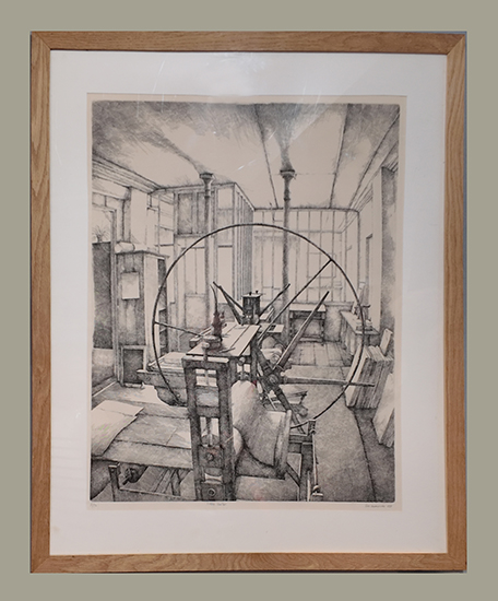 Paris Print Fair rend hommage aux artistes imprimeurs et graveurs qui créent de vrais relations comme en atteste cet Atelier de René Tazé par Erick Desmazières (1979).