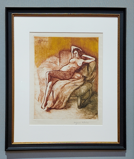 Jurjens Fine Art (Francfort) : des tirages de Suzanne Valadon, un monotype dans les teintes orange/rouge/brun Christiane (1905) et Louise nue sur le canapé (1895).