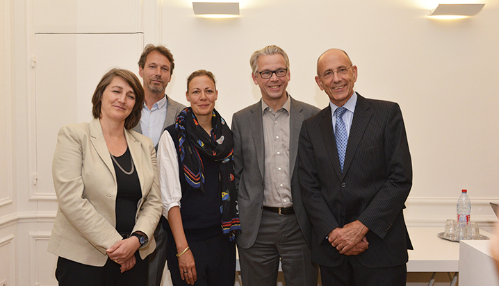 (ci-dessus en ouverture, lors de la présentation à Paris de l’Atelier, en juin 2015, de gauche à droite : la responsable des expositions du Nederlands Fotomuseum de Rotterdam Marieke Wiegel, le directeur adjoint du Foam Amsterdam Marcel Fiel, l’artiste Viviane Sassen, l’attaché culturel Bart Hofstede et l’ambassadeur Ed Kronenburg).