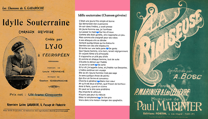 Un répertoire plus en nuances qui choisissait ses mots était vendu, dès le XIXe siècle, par les chanteurs des rues mais surtout par les interprètes dans les cafés-concerts, pendant les intermèdes, et dans les salles de spectacles à l’entracte.