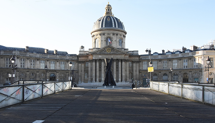 Photo en ouverture : la sculpture de Georg Baselitz, membre associé étranger de l’Académie des beaux-arts, « Zero Dom » a été exposée devant l’Institut du 27 octobre 2021 au 7 mars 2022.