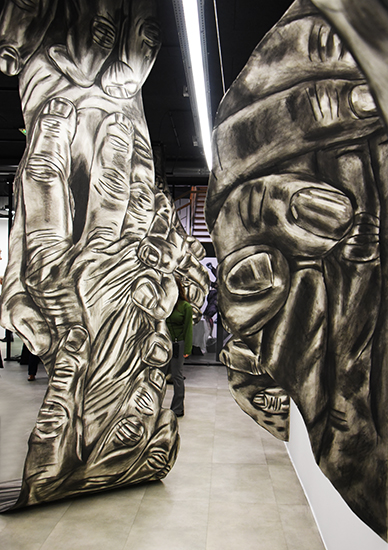 Petit tour d’horizon de la forêt de mains mise en place par Susanna Inglada ; un travail sur papier recto verso, de la vidéo, ses premières céramiques.