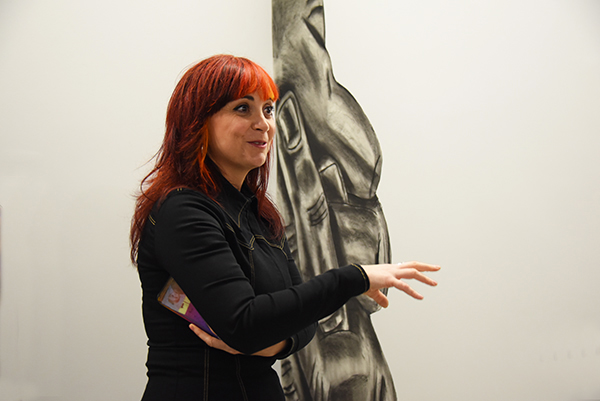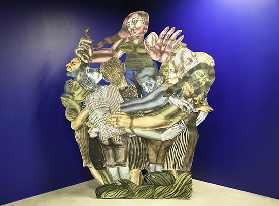 Elles nous conduisent vers un grand dessin qui offre une scène de figures tourmentées. Une œuvre « entre unité et conflit« , une sorte d’avertissement qu’elle nous transmet.