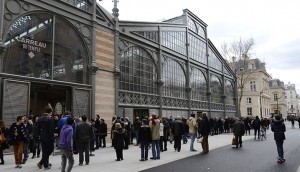Samedi 22 février, la foule attend sagement de pénétrer dans le nouveau Carreau du Temple, sous la halle rénovée qui