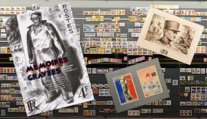 Les travaux de gravure des étudiants de l’Ecole Estienne (Paris XIIIe), sur le thème du timbre Résistance émis en 1947,