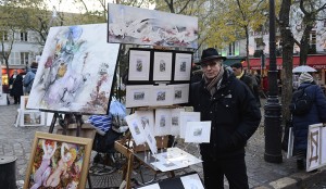 Décembre 2013. Trois jours par semaine, jeudi, vendredi, samedi, vous trouverez cet artiste place du Tertre à Montmartre, en face