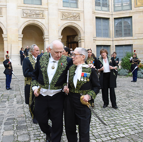 Sous la Coupole de l’Institut de France, tous les invités, journalistes, proches, membres de l’Institut, personnalités, VIP se sont levés pour l’arrivée des membres de l’Académie des beaux-arts. Progressivement. Académiciens et correspondants des différences sections se sont installés.