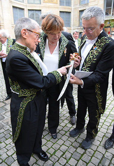 Un sabre, comme épée d’Académicienne, fièrement brandit sous la Coupole. Xavier Darcos Chancelier de l’Institut de France était présent, fidèle aux cérémonies de l’Académie.