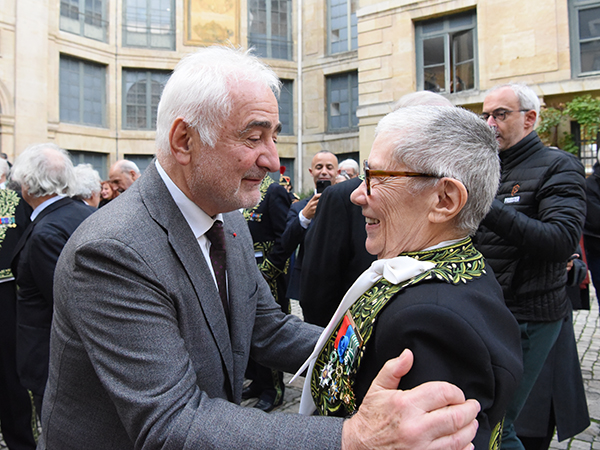 Le secrétaire perpétuel Laurent Petitgirard en sa compagnie évoquait, sans doute, avec elle les travaux à venir des différentes commissions.
