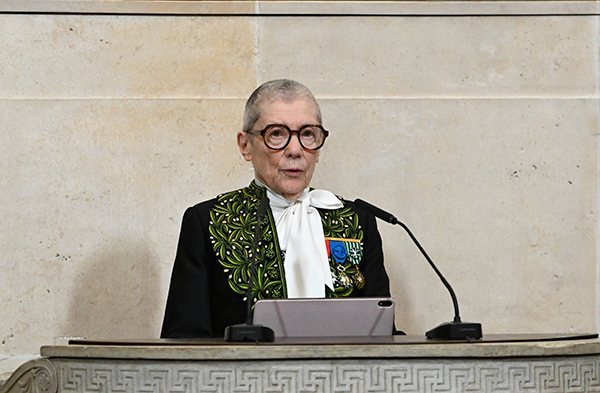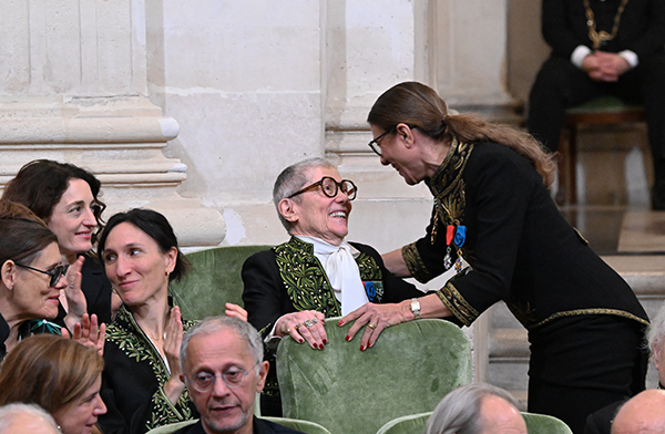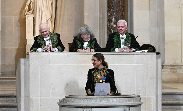 Blanca Li a prononcé le discours d’installation de Tania Mouraud, suivi avec intérêt par le Secrétaire perpétuel Laurent Petitgirard, La présidente Coline Serreau et Adrien Goetz.