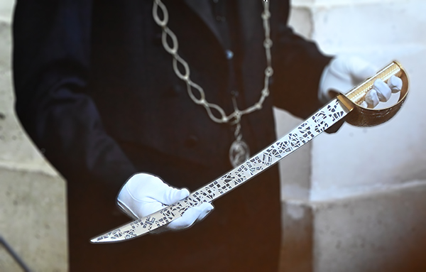 L’arrivée de l’épée, l’artiste a choisi de faire réaliser un sabre