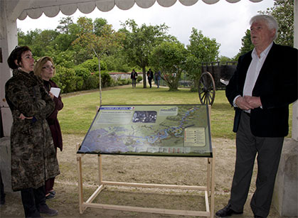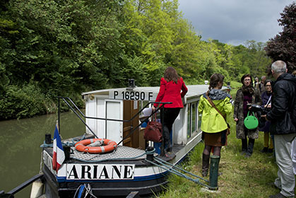 Le 30 mai à l’usine élévatoire de Villers-les-Rigault (77) Anne Le Strat, adjointe au maire de Paris, chargée de l’eau, de l’assainissement et de la gestion des canaux avec Francis Elu, maire de Congis-sur-Thérouanne (77) ont dévoilé les six premiers panneaux de l’exposition permanente qui ont été installés au long du canal de l’Ourcq, à Claye-Souilly, Fresnes-sur-Marne, Trilbardou, Vignely, Villers-Les-Rigault, Lizy-sur-Ourcq. Chaque panneau présente une carte générale du canal de l’Ourcq avec un zoom sur la zone où il est implanté. Chaque panneau raconte une histoire (le canal au XIXe siècle, le bateau-poste), entre dans des détails plus techniques (les usines élévatoires ) et rappelle ses spécificités (le halage ou touage, le transport de marchandises) fournissant également des informations pratiques. Cette présentation était suivie d’une découverte in situ avant d’embarquer pour une balade sur le Minos ou l’Ariane. D’autres panneaux sont déjà en préparation. (photos : Dominique Germond)