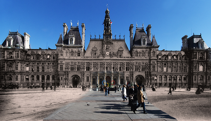 Il faudra 10 ans, de 1873 à 1883, pour reconstruire dans l’axe de l’avenue Victoria ; soixante-six projets imités de l’Hôtel du Boccardo dont celui de Théodore Ballu et Edouard Deperthes. Le budget passera 16 millions à 34. Dès 1873, a commencé l’édification des nouvelles mairies d’arrondissements créées après 1860.