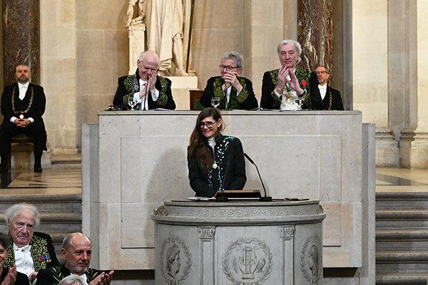 Nina Childress concluait : « Votre engagement, votre œuvre, votre intelligence et votre délicatesse vous ont conduit ici… Je me joins à mes consœurs et confrères pour vous souhaiter chaleureusement la bienvenue parmi nous. Ça va être super. »